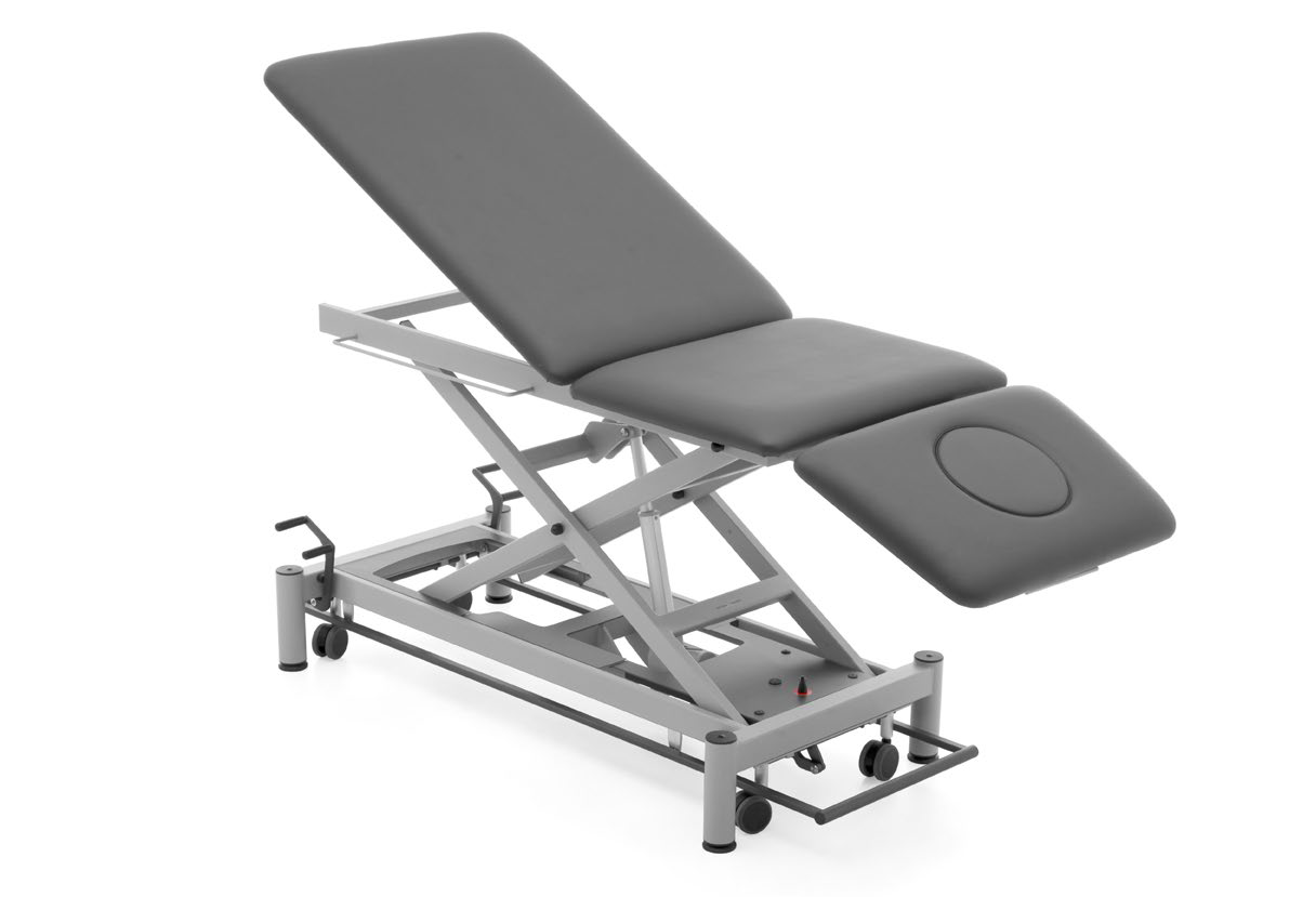 - S3.F4: 3-секційний стіл для масажу та лікування з двоважільною висувною системою колеса, що складається з 4 спрямованих коліщаток із центральним гальмом і 4 ніжок із нековзкими гумовими ніжками.